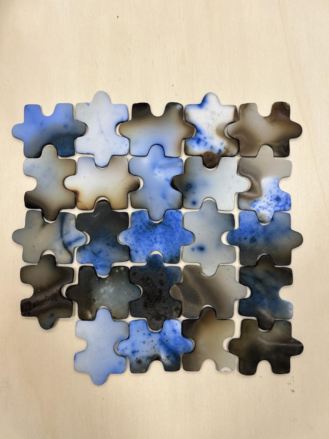 Tworzę rzeźby ceramiczne, mozaiki, obrazy akrylowe na płótnie oraz na drewnie. Łączę techniki.